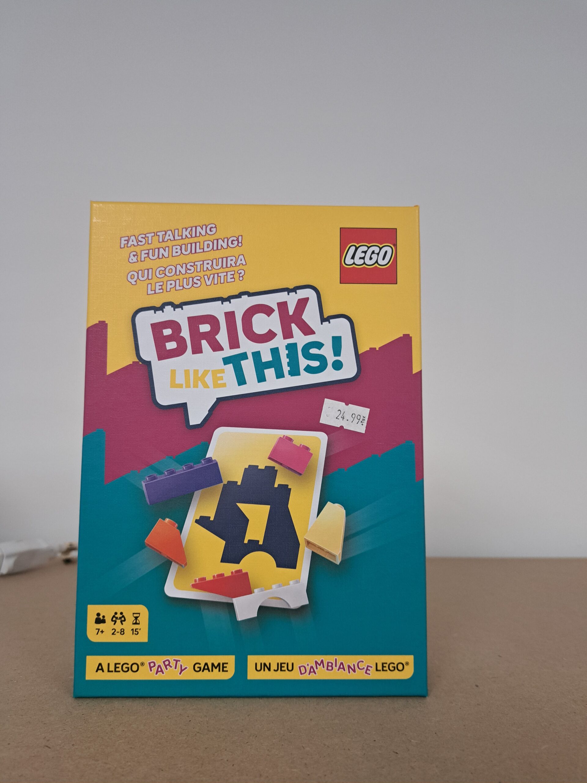 En Brick Like This! Des équipes de deux personnes, un instructeur et un constructeur, sont chargées de construire une forme à partir de briques LEGO. L’instructeur lui expliquera comment créer une forme sur une carte de forme que seul l’instructeur peut voir. Toutes les équipes jouent en même temps, en s’efforçant de construire leurs formes le plus rapidement possible.Le vainqueur est l’équipe qui a marqué le plus de points à l’issue des six manches !